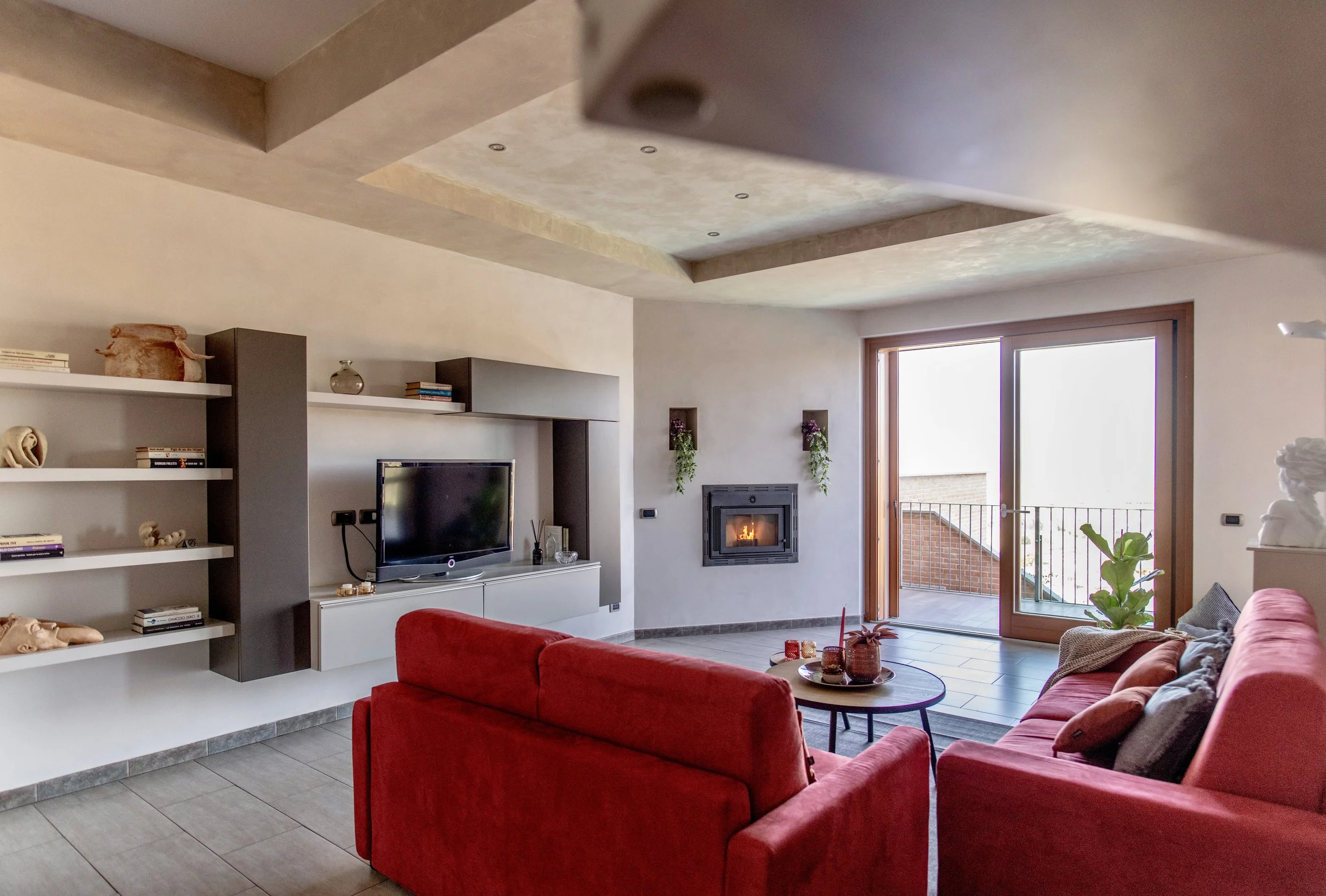 La zona giorno comprende soggiorno con camino, sala da pranzo e grande terrazzo abitabile, cucina spaziosa con accesso esterno, mentre la zona notte sullo stesso livello offre tre camere matrimoniali con cabina armadio e due bagni (uno con doccia, uno con vasca idromassaggio).